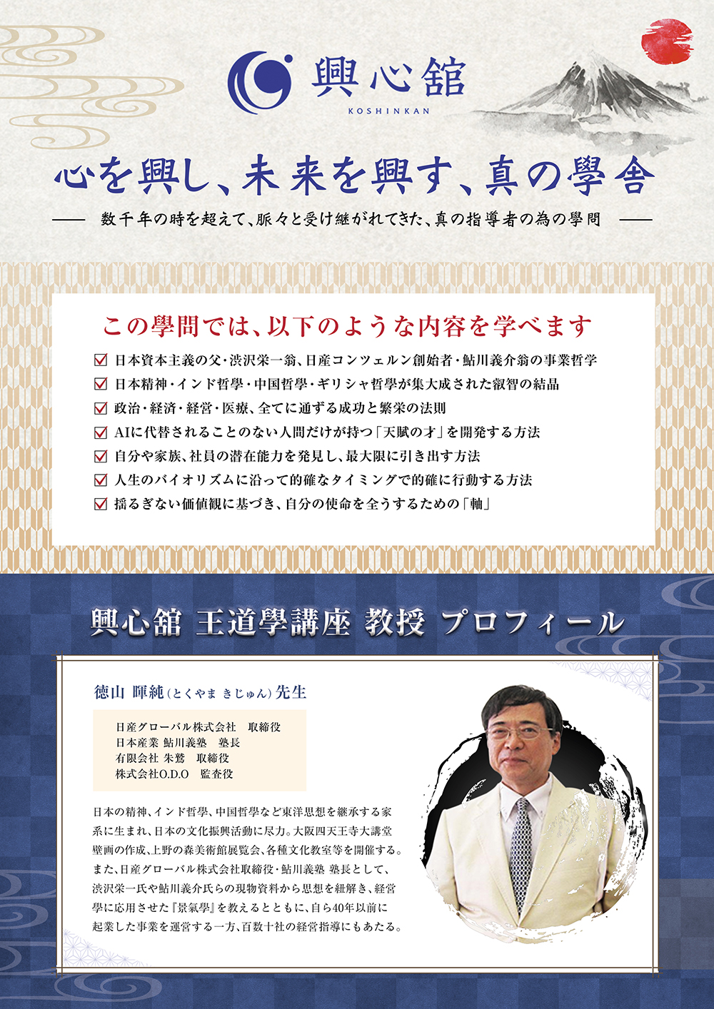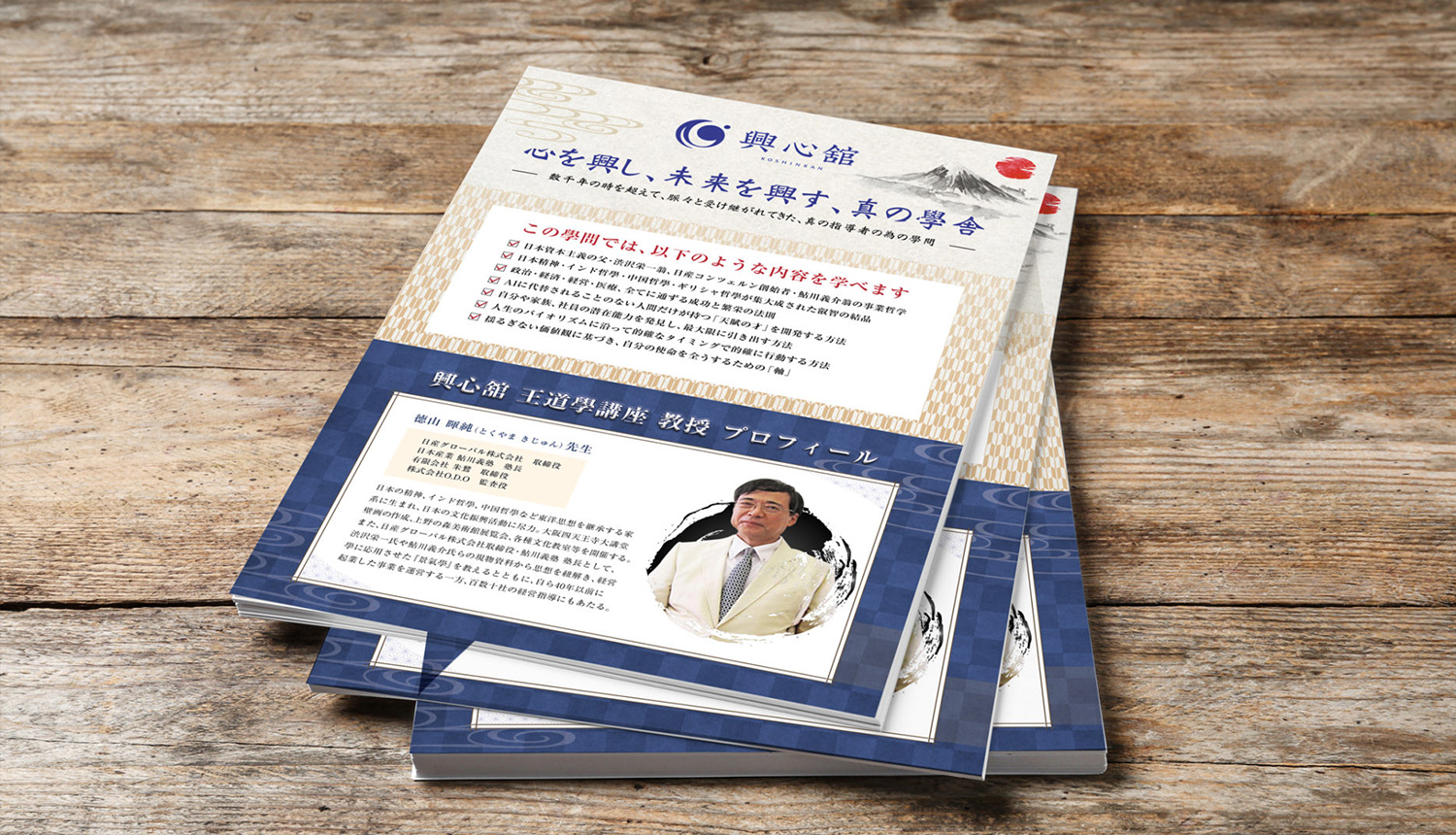 キャッチに『心を興し、未来を興す、真の學舎』とあるように、企業の代表や役員など一定以上のステータスを持つ方を対象とした団体様のチラシです。