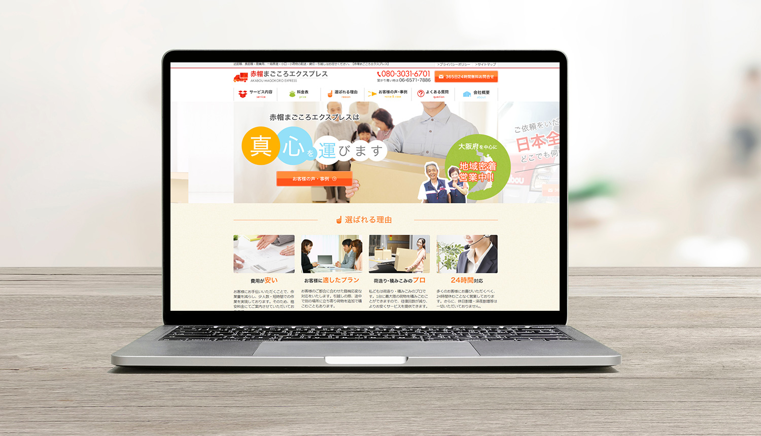 初めての一人暮らしをされる方の利用も多いとのことでしたので、とにかく温かみがあり、安心してりようができることが伝わるように、どのような車に荷物を乗せるのか、どのような人が運ぶのか、ひと目で伝わるようにメインビジュアルで表現しました。
